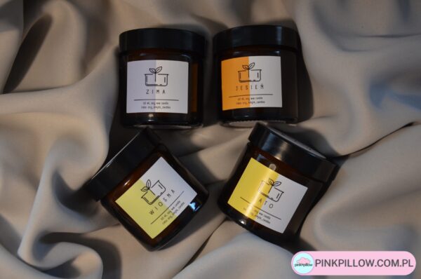 Kolekcja 4 świec, których aromaty odpowiadają poszczególnym porom roku. Każda świeca wykonana w 100% z wosku sojowego, zamknięta w eleganckim i gustownym słoiczku o pojemności 60 ml. Tworzona tylko i wyłącznie z naturalnego, w pełni biodegradowalnego wosku, wytwarzanego z soi, który to sprawia, że świeca jest nieszkodliwa dla naszego zdrowia i przyjazna dla środowiska.