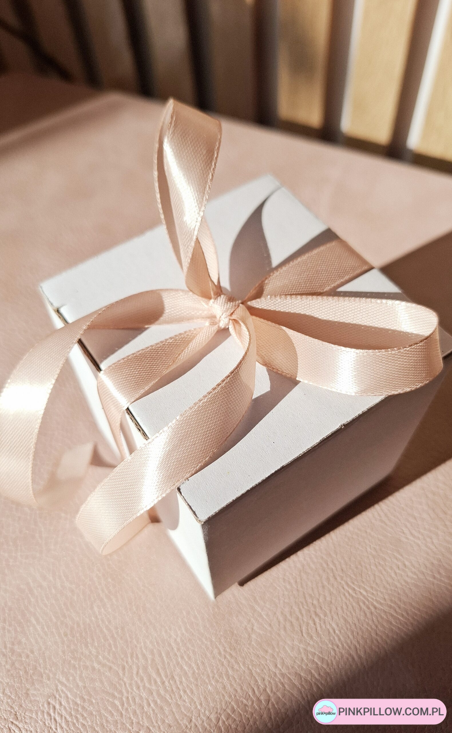 Możesz zamówić ją od razu w wersji prezentowej – w różowym welurowym woreczku lub satynowym woreczku (w zależności od dostępności) i białym pudełku z brzoskwiniową kokardą.
