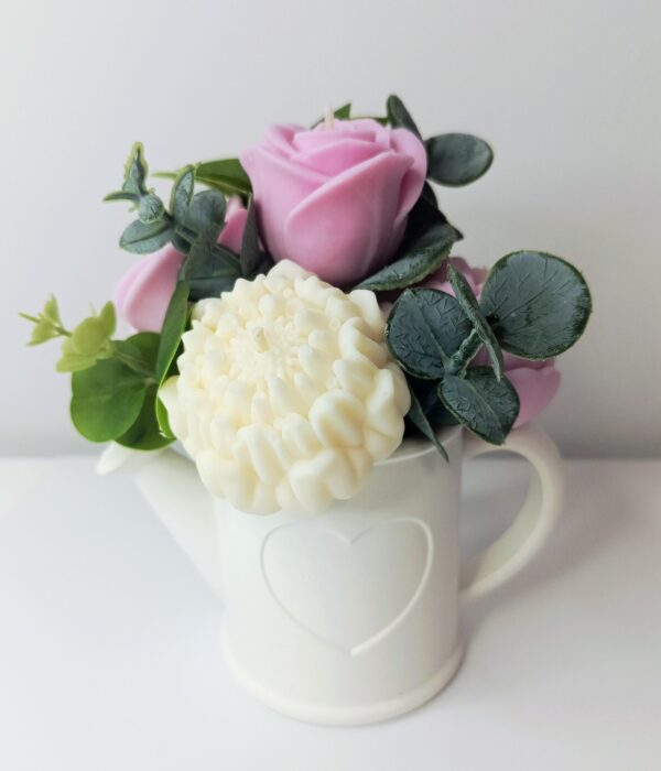 Wyobraź sobie bukiet kwiatów, który nigdy nie zwiędnie… Tak właśnie powstała ta wyjątkowa kompozycja świeczek umieszczonych w eleganckiej, gipsowej konewce. Każdy detal wykonany jest tak aby cieszyć oczy i wypełniać wnętrze subtelnym blaskiem.