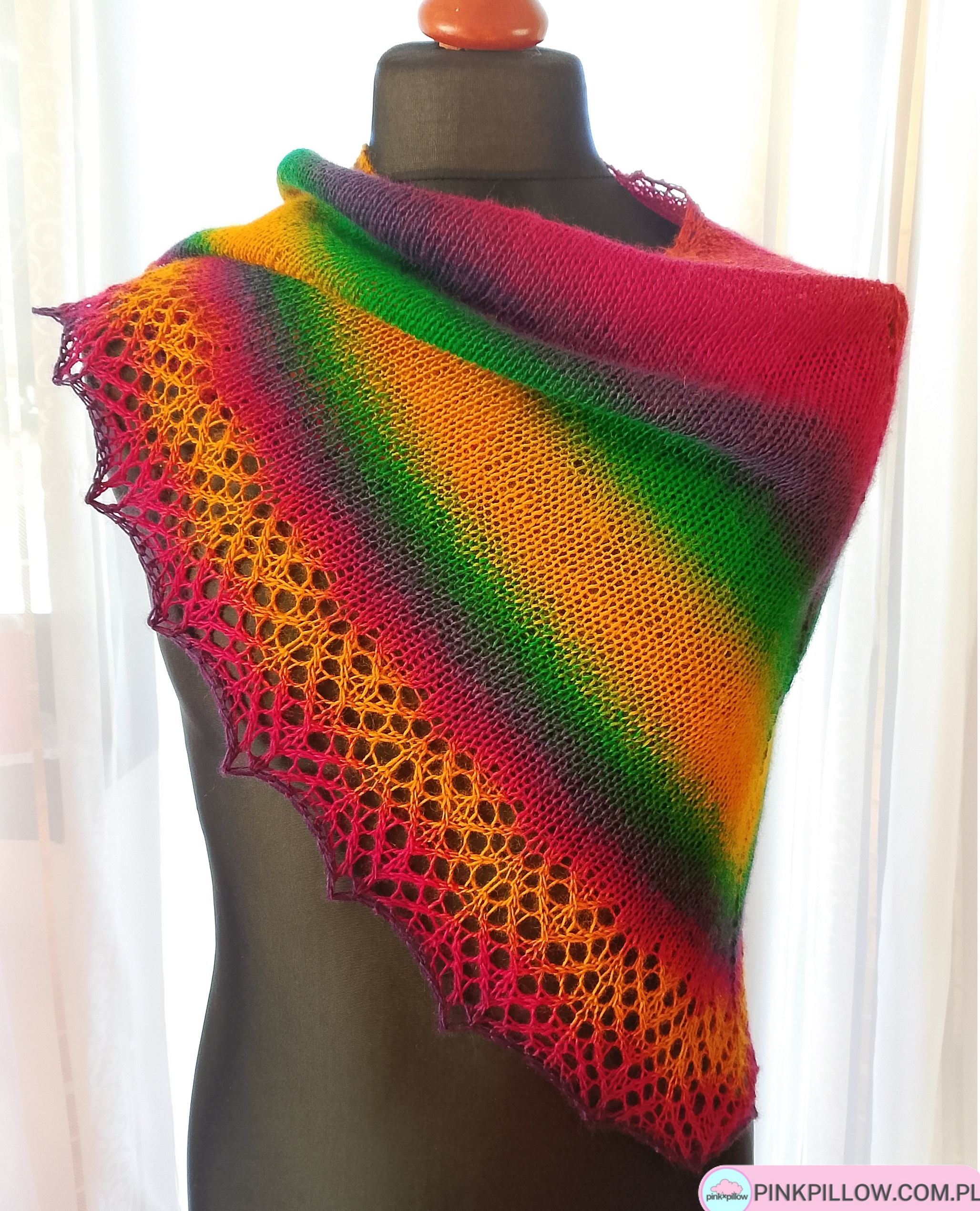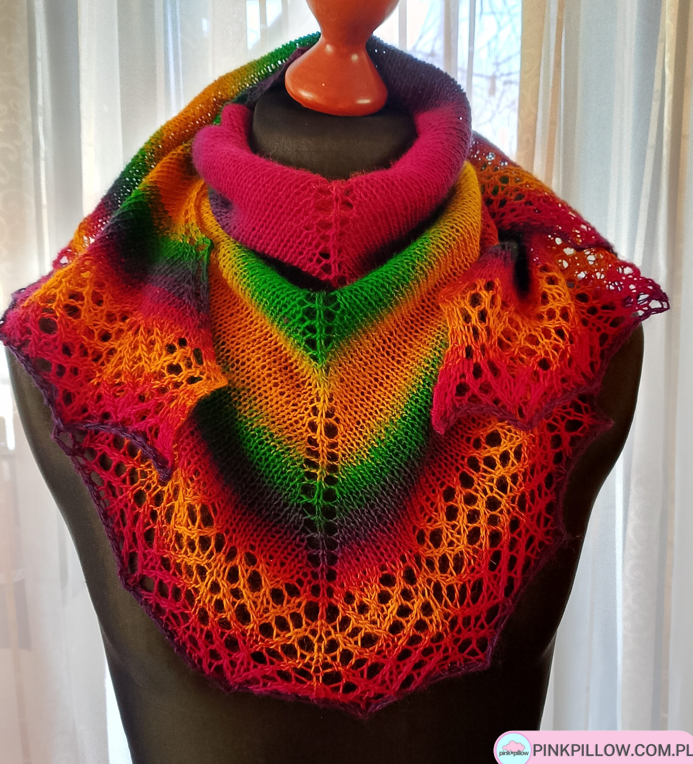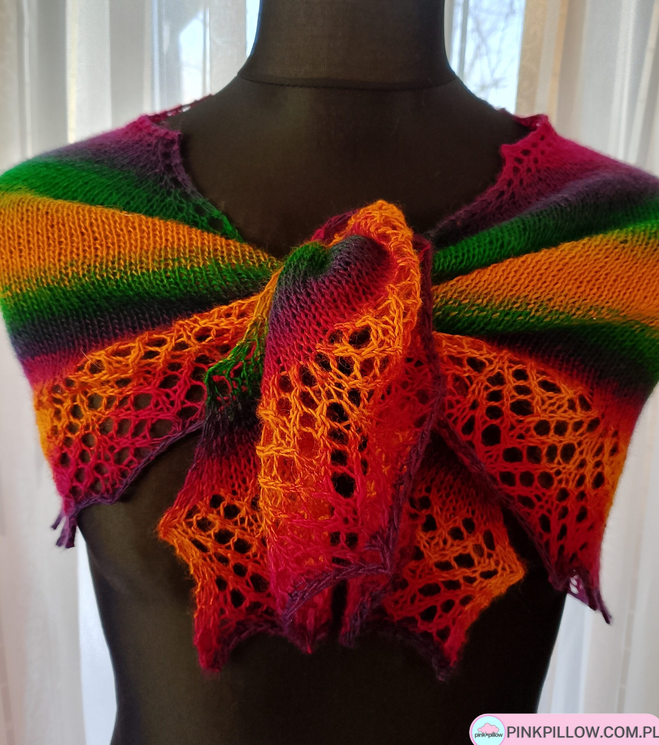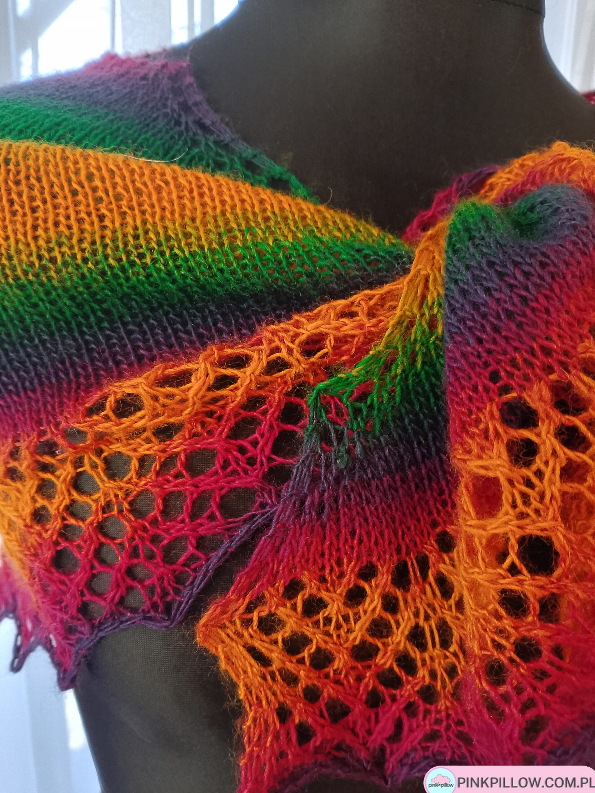 Tęczowa Chusta na drutach