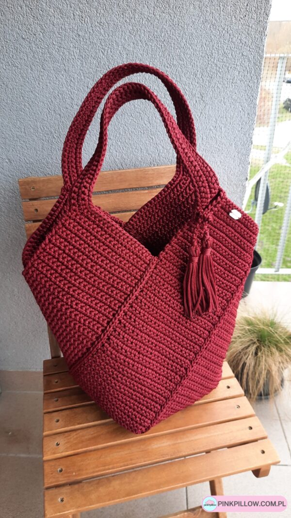 Torba damska na lato w kształcie Tulipan – lekka, ręcznie robiona torebka na szydełku ze sznurka poliestrowego, idealna na wszelakie wyjazdy gdzie pomieści ona najpotrzebniejsze rzeczy, sprawdzi się też w drodze do pracy czy szkoły.