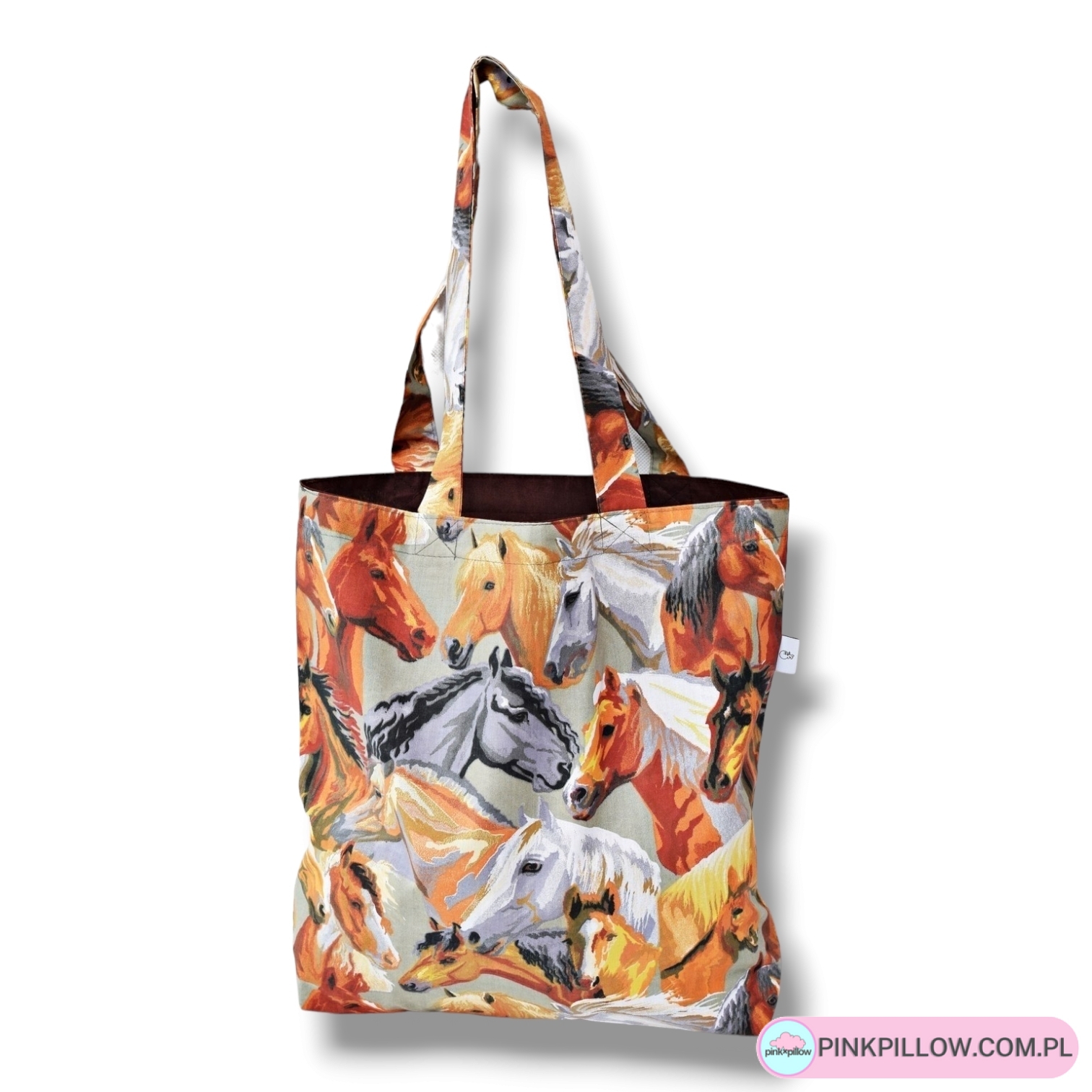 Czas wymienić plastikowe siatki na stylowe wzorzyste eko torby. Ekologiczna torba na zakupy uszyta z bawełny 100% z motywem koni i bawełnianą czarną podszewką. Świetna torba dla fanów Hobby Horse, posiadaczy stadniny, weteryniarzy czy Dżokeja lub Dżokejki.