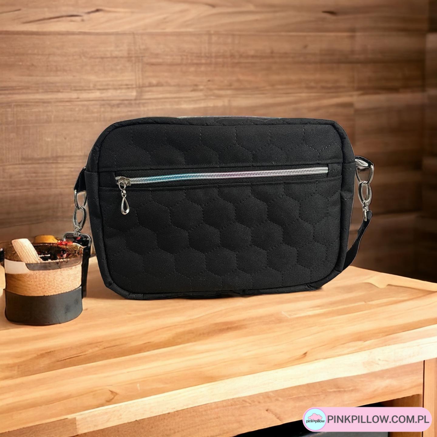 Pomieści wszystko, co najważniejsze – notatnik A5, portfel, telefon, klucze czy kosmetyczkę. Dzięki uniwersalnym wymiarom: