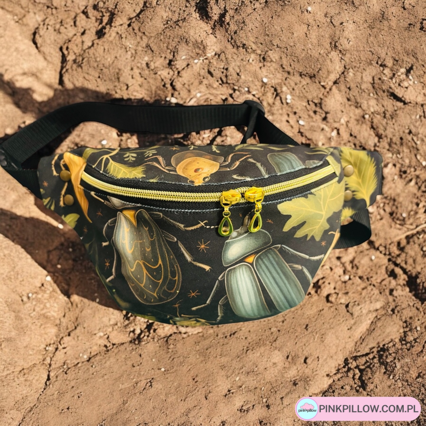 Torebka nerka w kobiecym wydaniu, która łączy funkcjonalność z oryginalnym lookiem. Uszyta z welurowego materiału z pięknym nadrukiem cyfrowym w Żuczki.