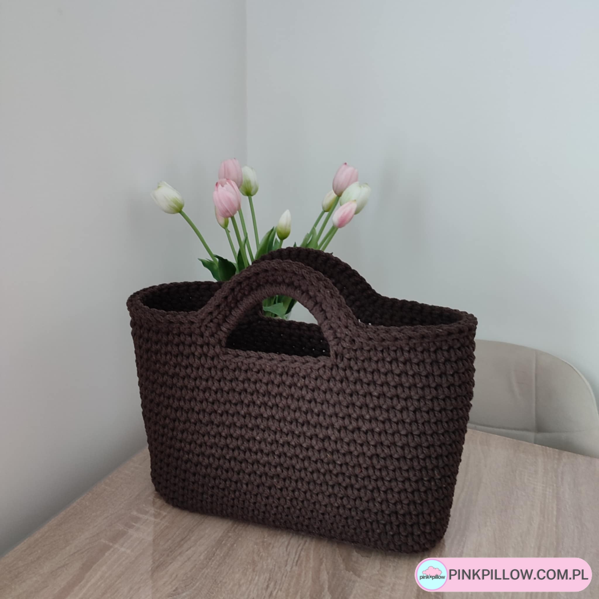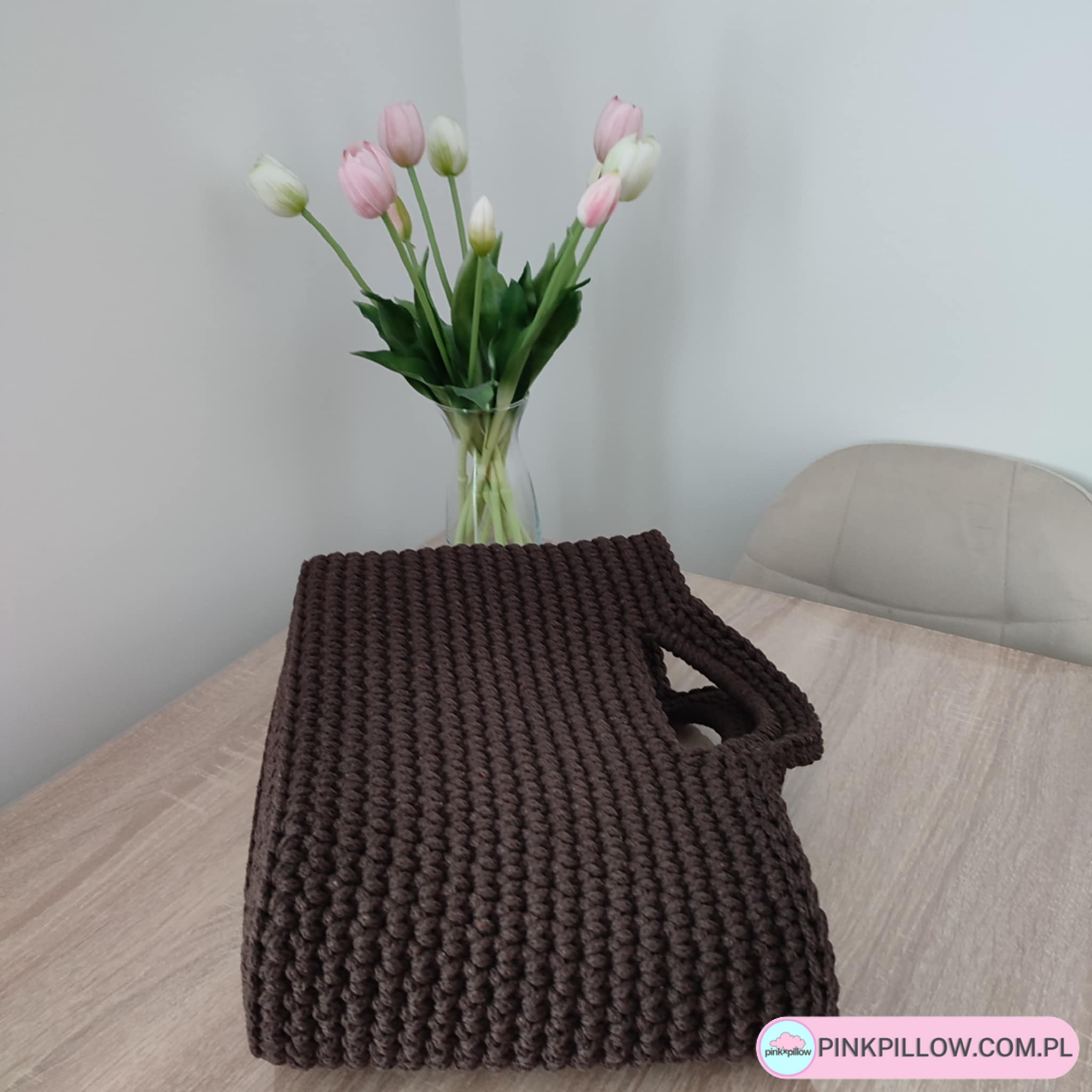 Koszyczek Wielkanocny ze sznurka – Różowe Tulipany