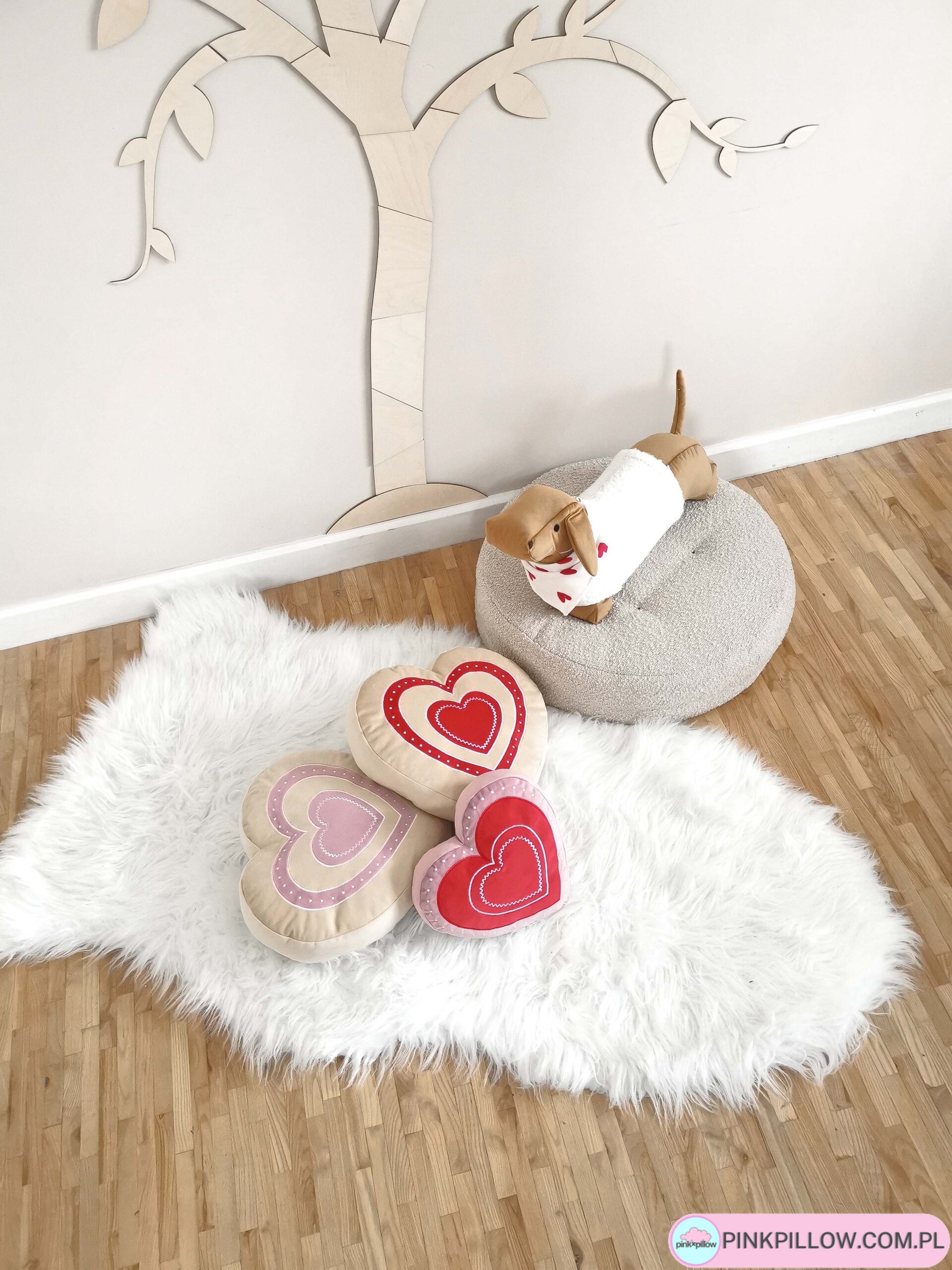 Szukasz wyjątkowej dekoracji do wnętrza lub romantycznego prezentu? Ta ręcznie szyta poduszka w kształcie serca z aplikacją to idealne połączenie estetyki, miękkości i starannego wykonania.