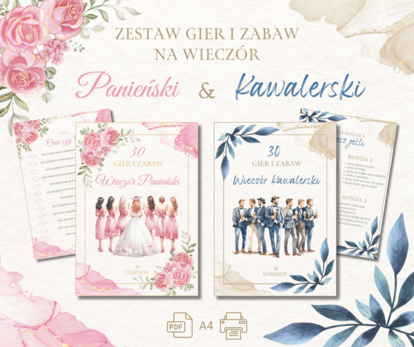 Zestaw zawiera 2 pliki PDF po 30 Zabaw na Panieński i Kawalerski.