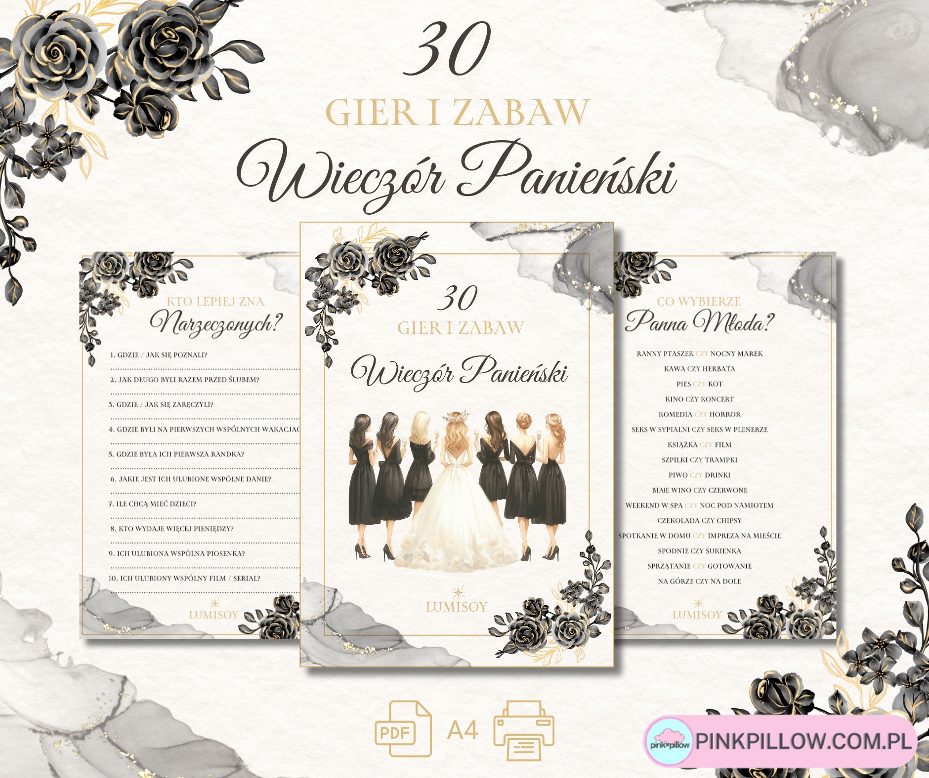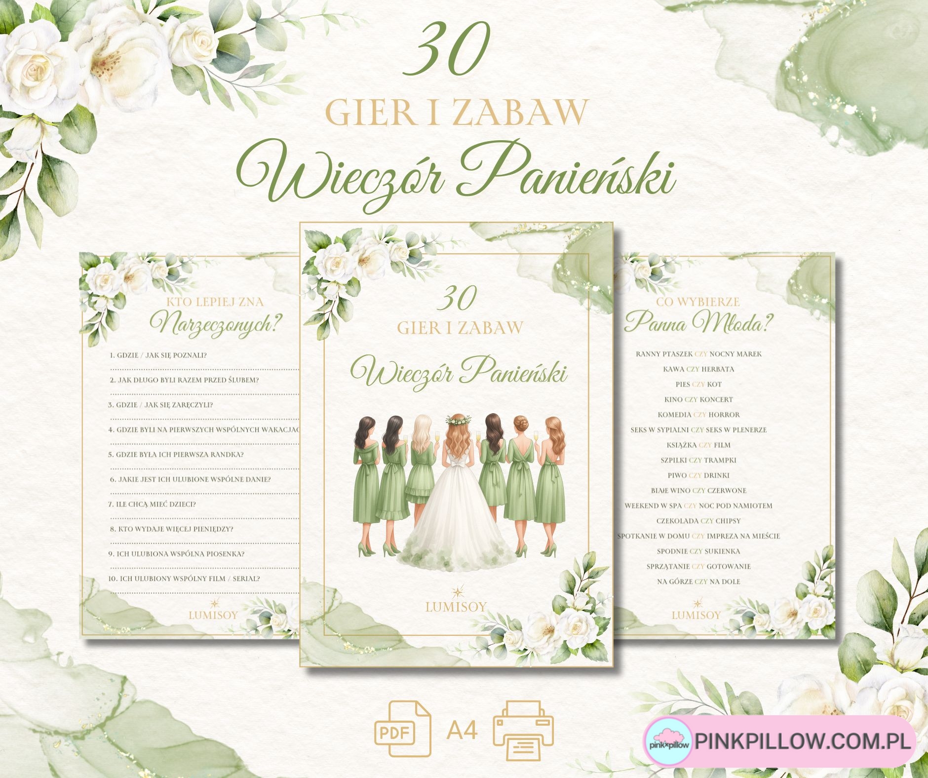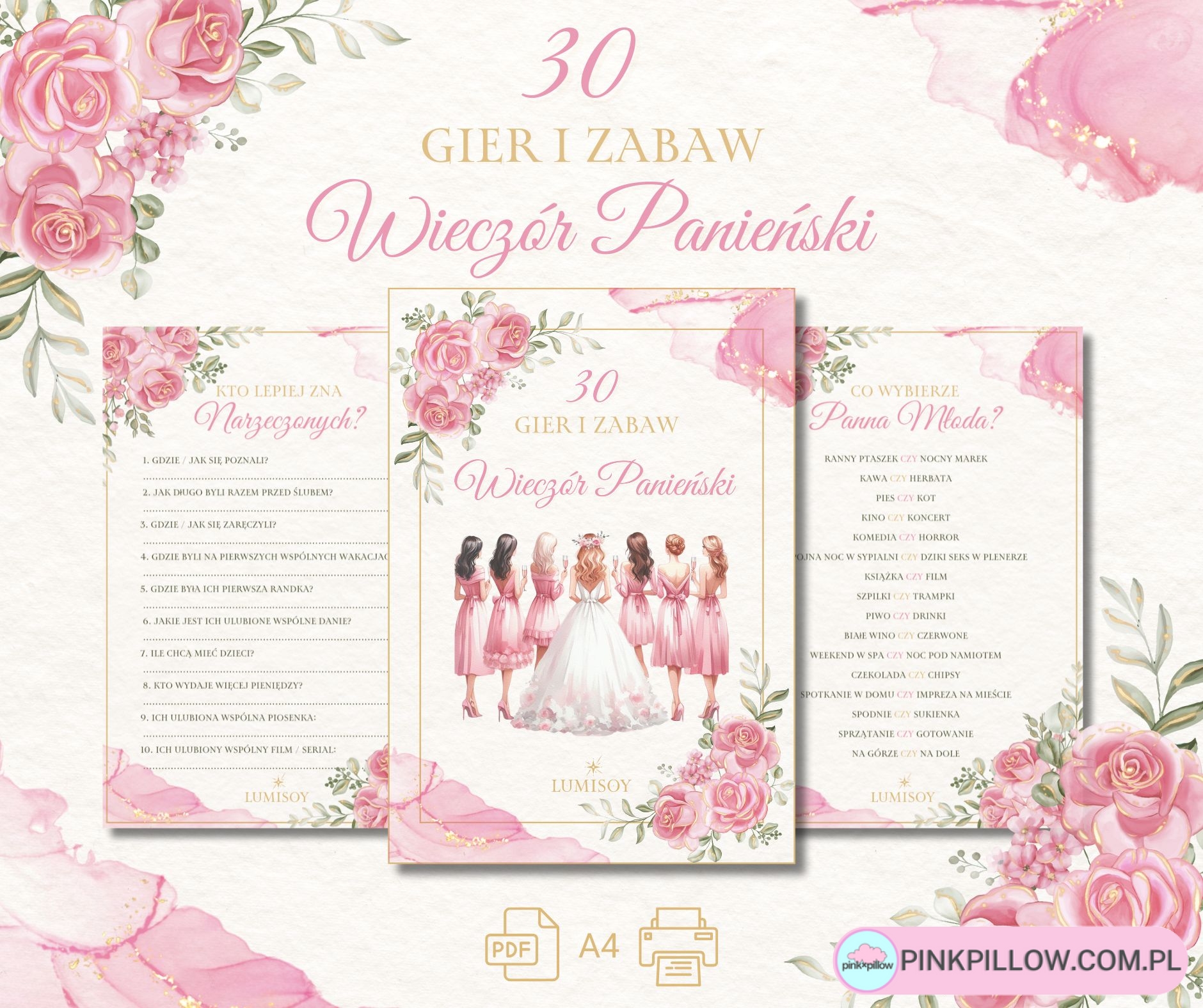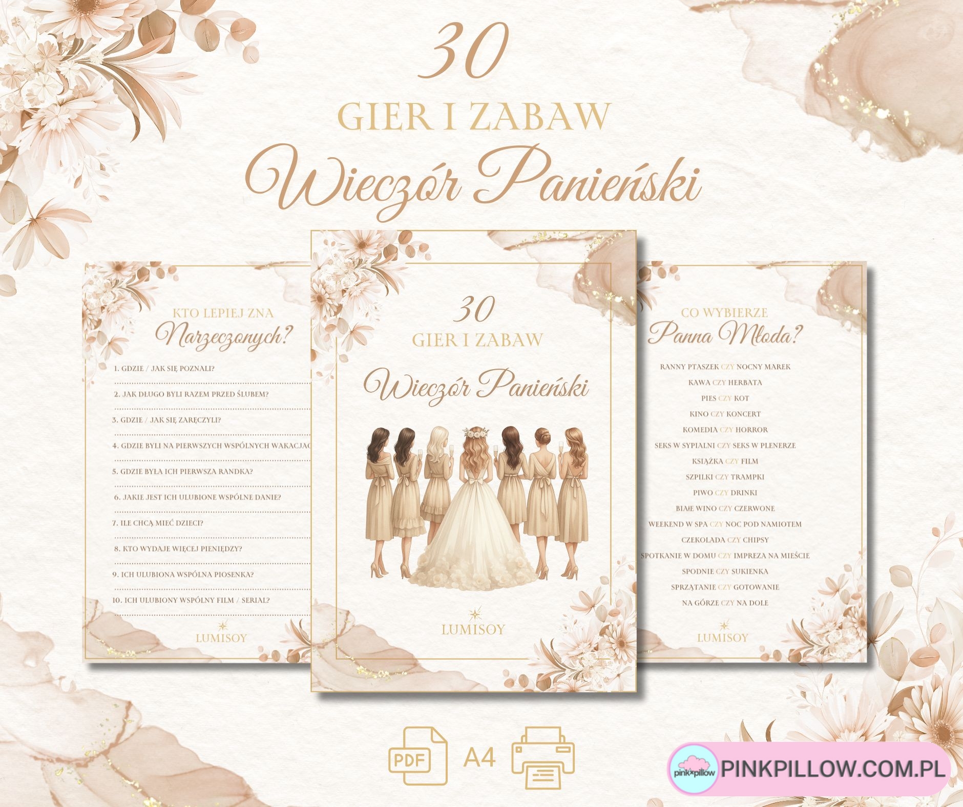 Zestaw 30 Gier i Zabaw na Panieński w wersji PDF do pobrania i wydrukowania.