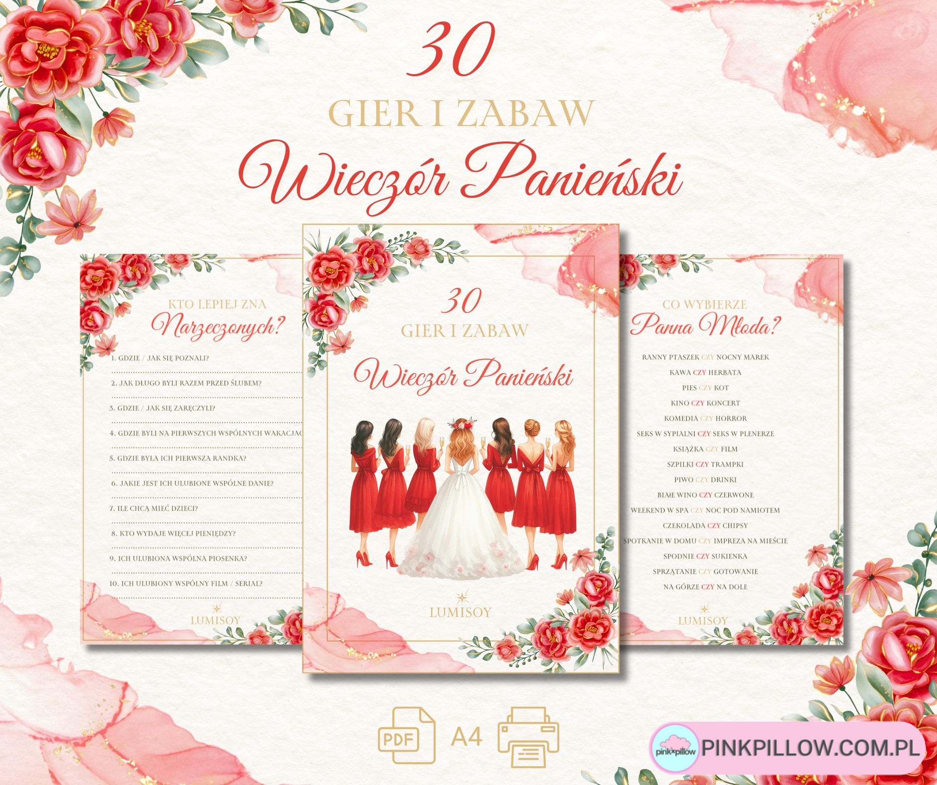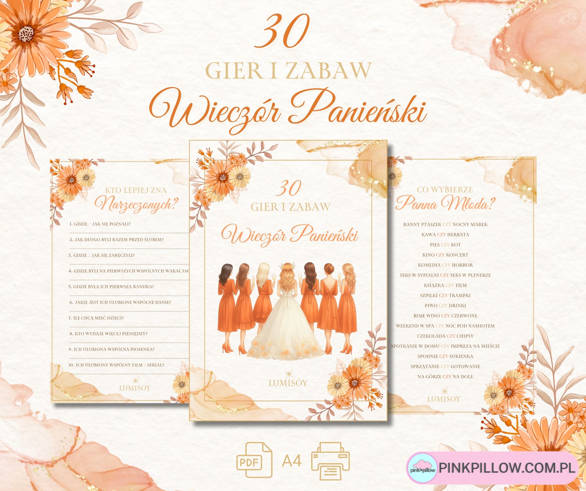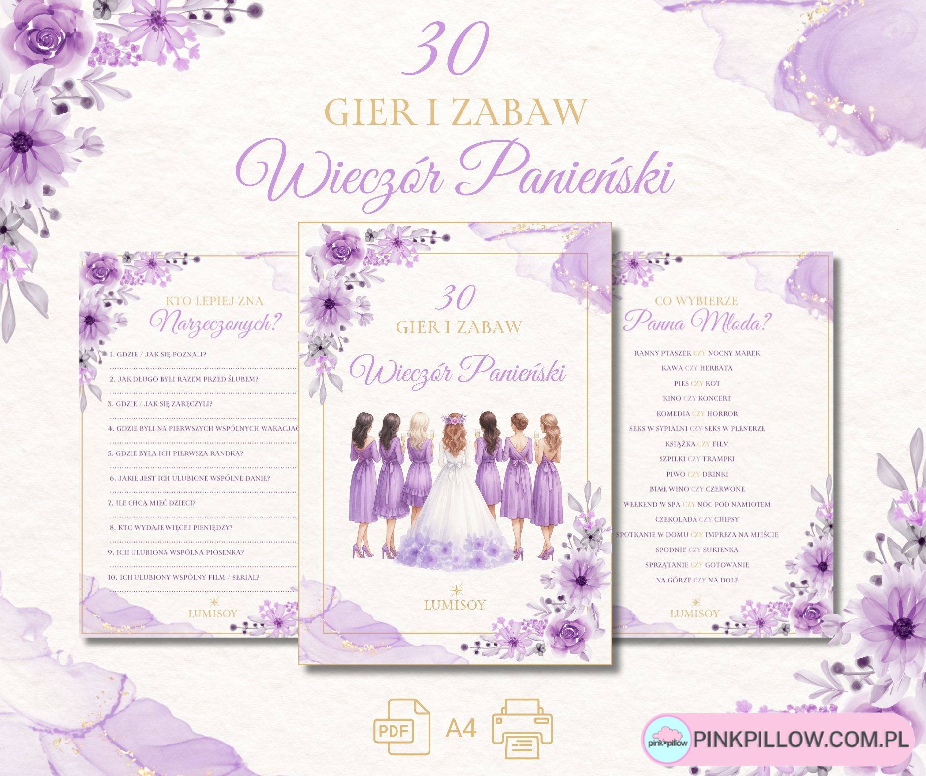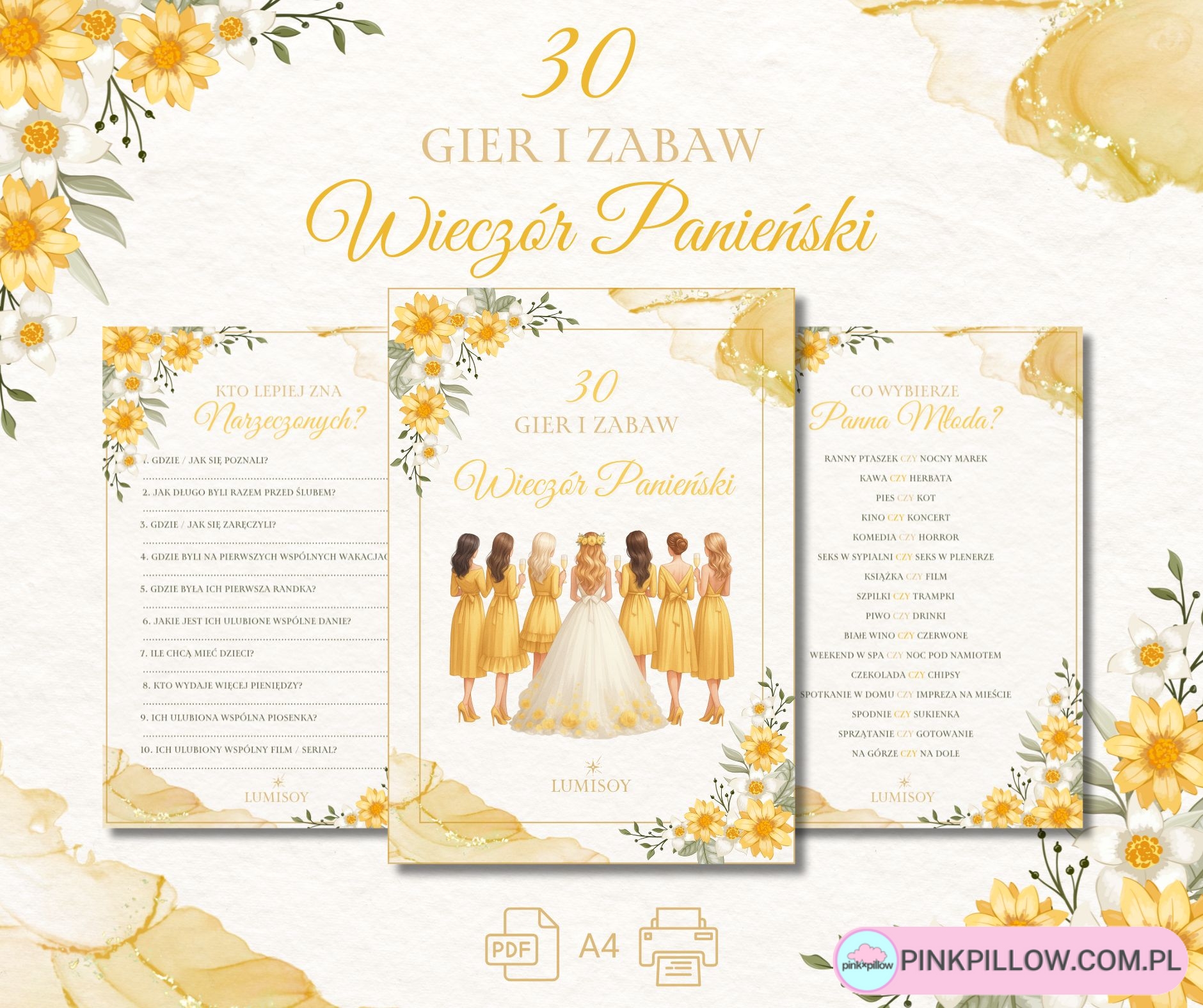 Zestaw 30 Gier i Zabaw na Panieński w wersji PDF do pobrania i wydrukowania.