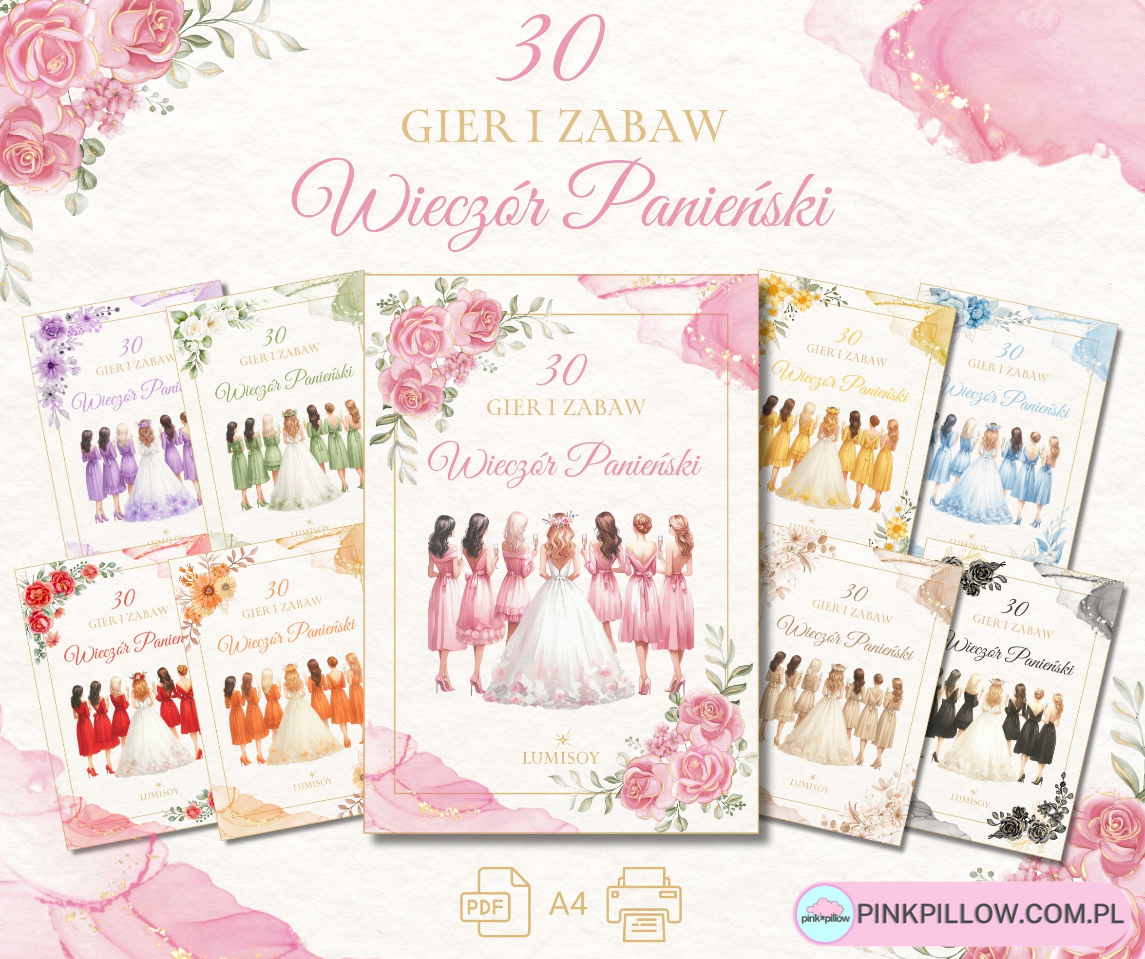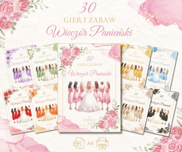 Zestaw 30 Gier i Zabaw na Wieczór Panieński – Różne Wersje Kolorystyczne