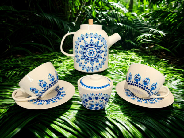 Czajniczek z Filiżankami – Wzór Mandala Dot Art